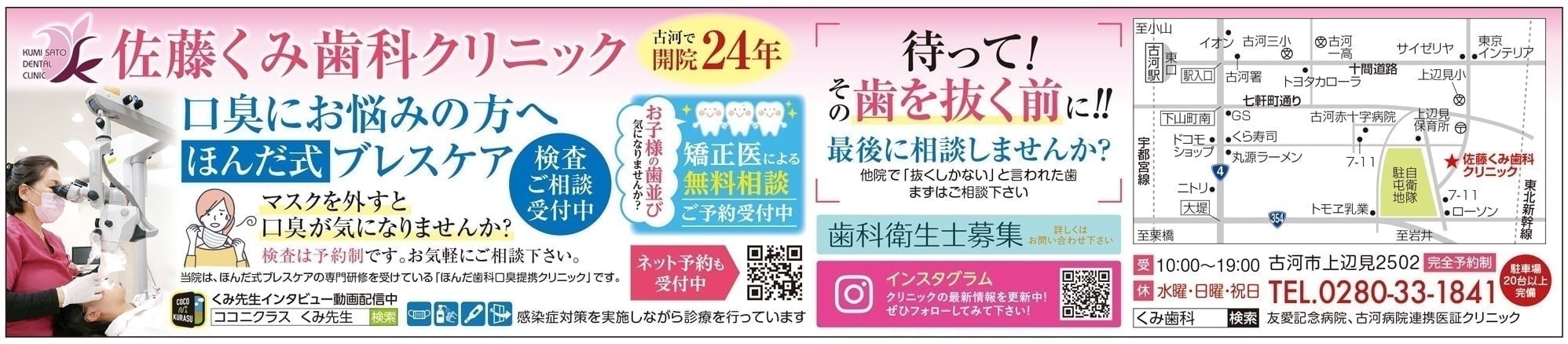 予約・変更は診療時間内にお電話でお願いします。 0280-33-1841